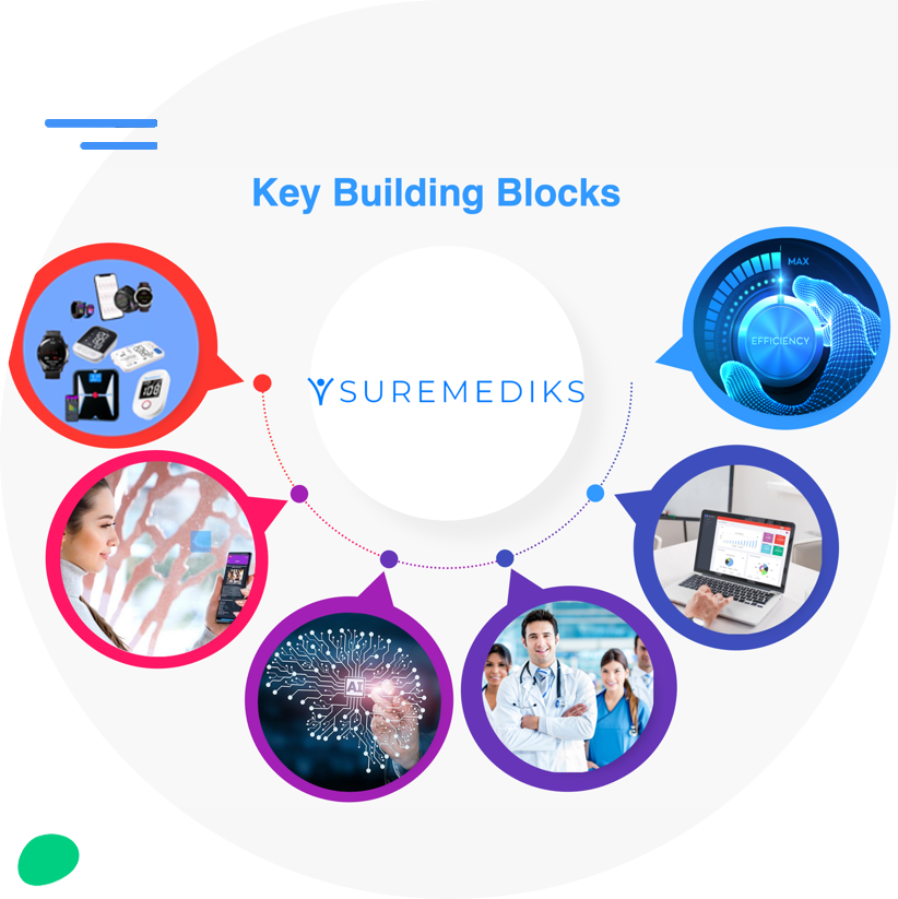 SureMediks represents the optimal fusion of rich health data and our trademarked AI Realistic Intelligence – No More Artificial®. By seamlessly connecting with internet-enabled devices and sensors—such as blood pressure monitors, body composition scales, smart rings, and glucose meters and has the capablilty to integrate with any sensor and device you may need—SureMediks gathers real-time insights directly from patients’ daily lives.